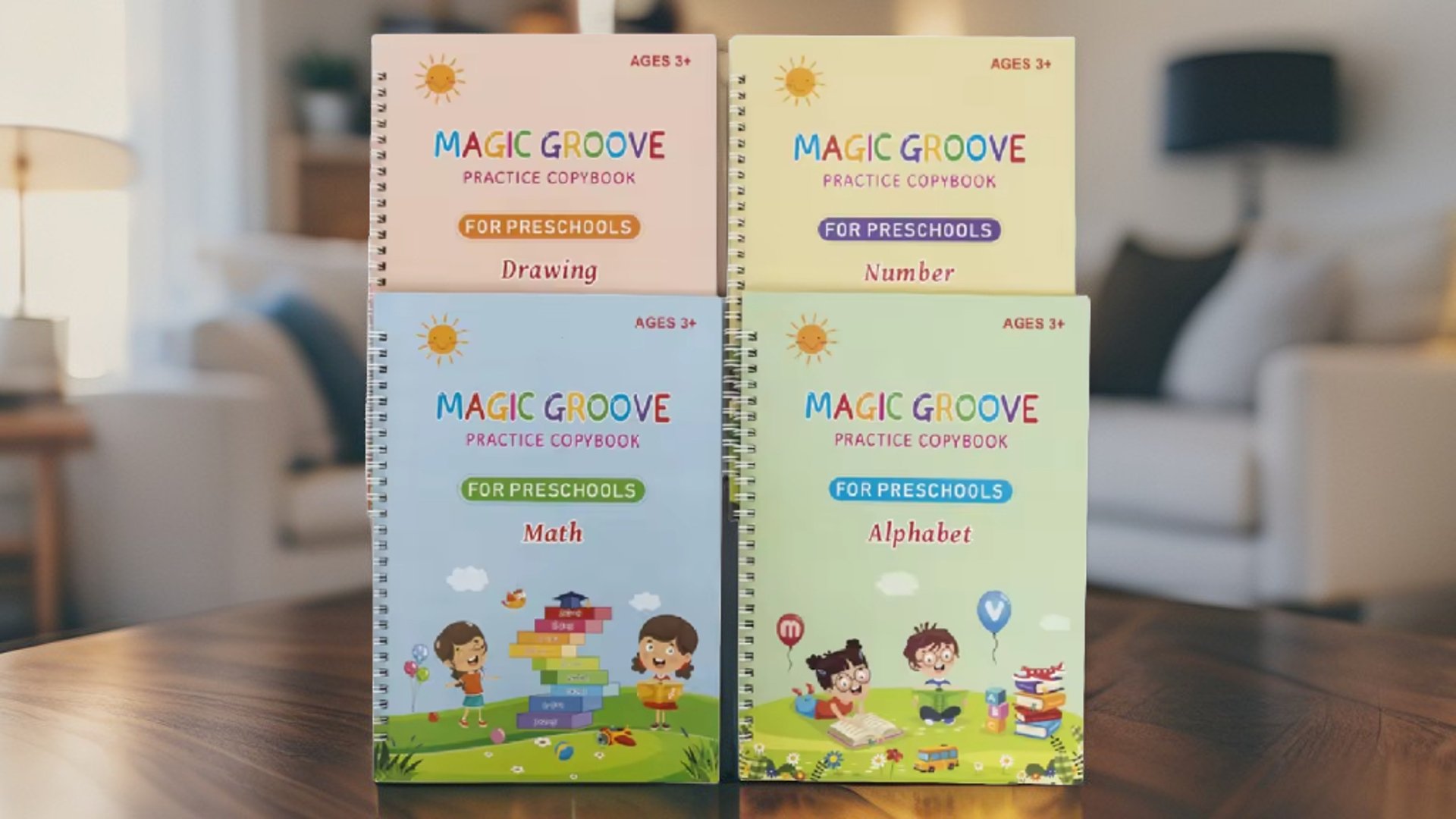 SkillGrove copybooks use physical grooves carved into each page to guide your child's pencil along the correct path.